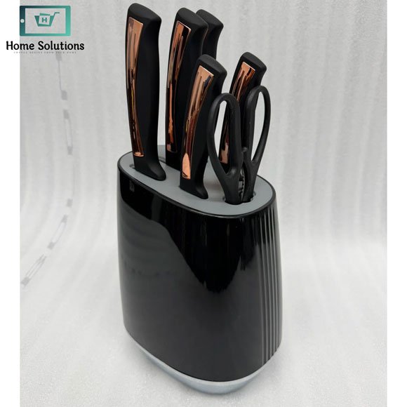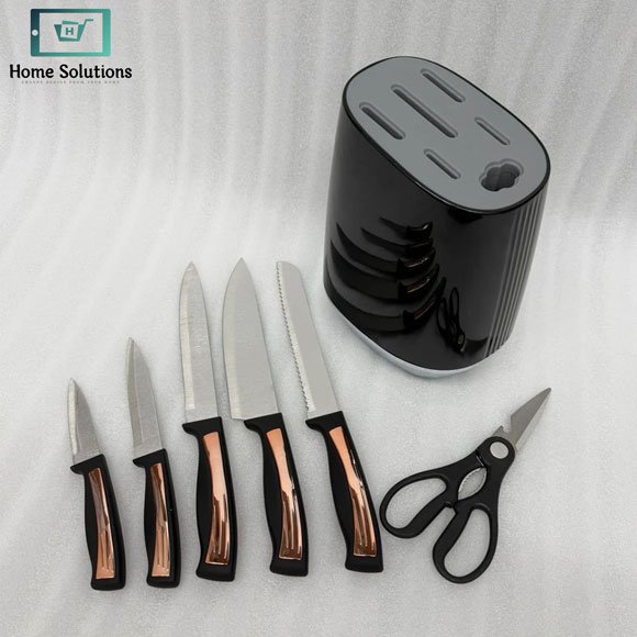Elegant Knife Set 7-Piece – Rose Gold & Black