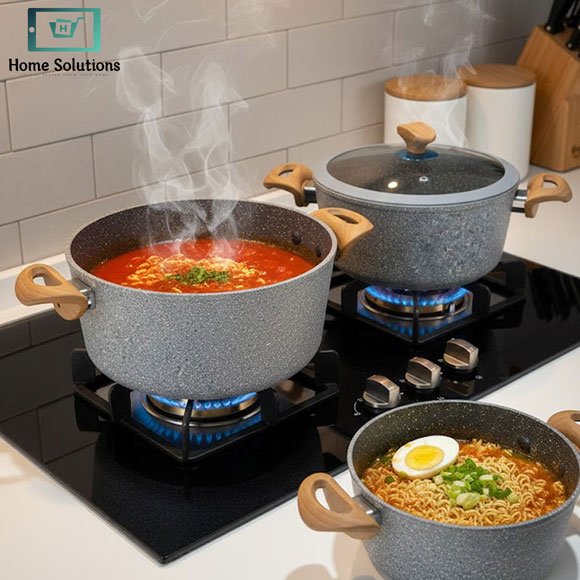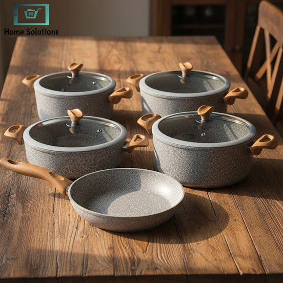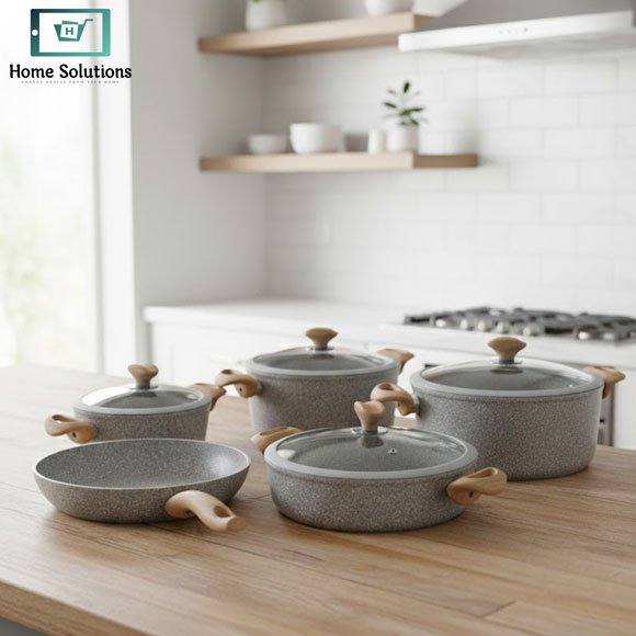 This non-stick cookware set includes everything you need for healthy, low-oil cooking—perfect for everyday meals or entertaining family and guests in Pakistani kitchens. The non-stick cookware set ensures easy cleaning, durability, and elegant design for a complete cooking experience.