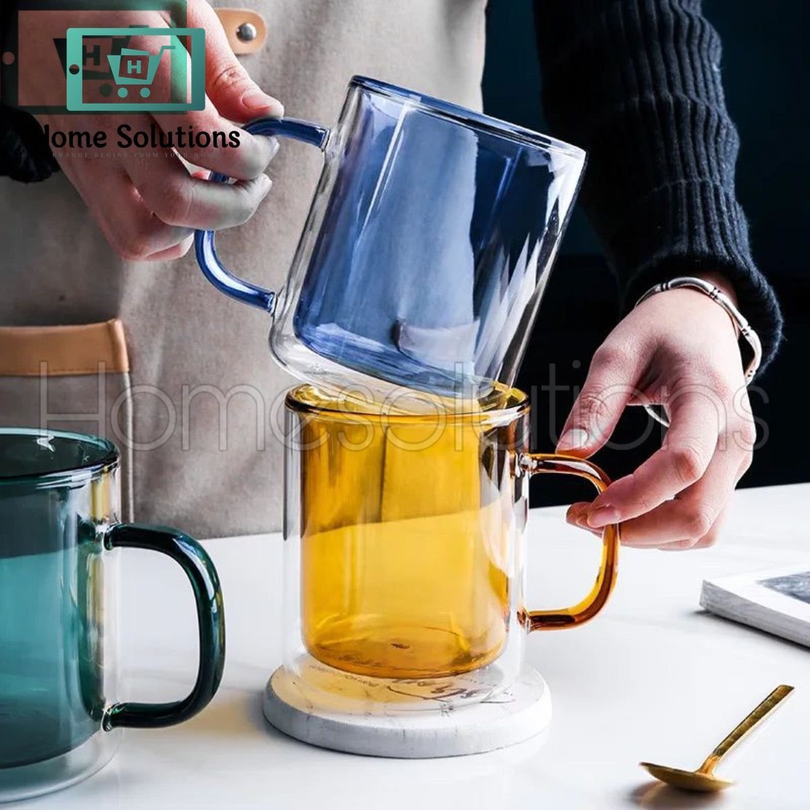 Introducing our newest arrival: a stunning double-wall mug available in four beautiful colors—blue, green, amber, and smoke. Each mug boasts a generous capacity of 250ml, making it perfect for enjoying your favorite hot or cold beverages.