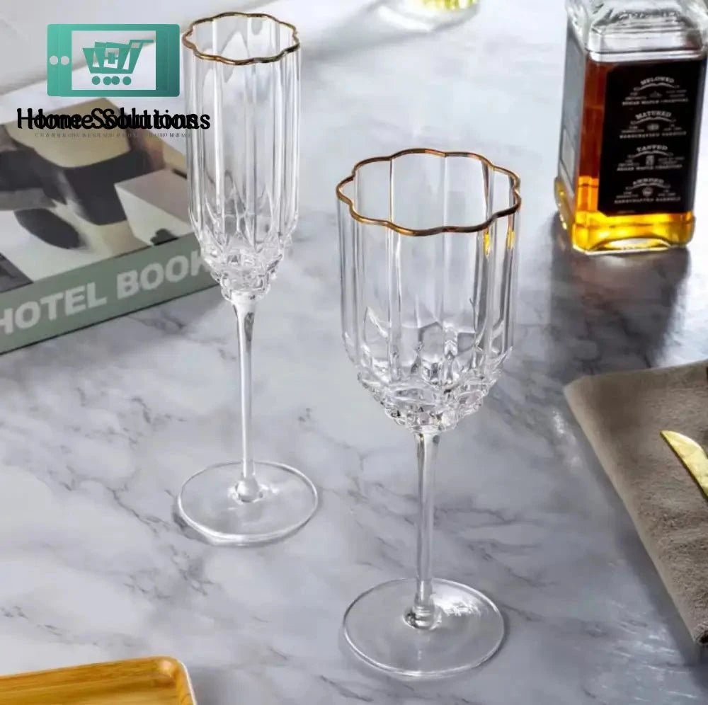 Flower Bud Crystal Goblets and Fluet Glass – Set of 6
