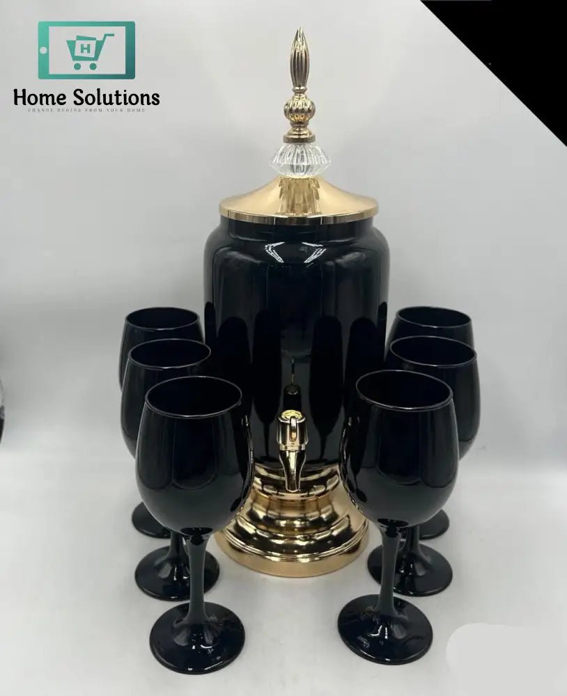 Crafted from high-quality glass, the dispenser includes a convenient tap for easy pouring, while the matching glasses complete the serving experience with a coordinated, classy look.