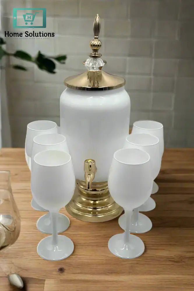 Includes 1 glass dispenser (3 Ltr) + 6 matching glasses