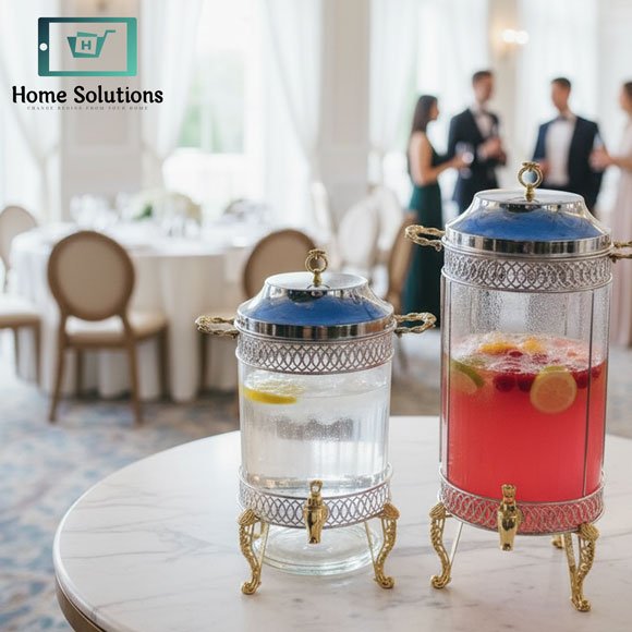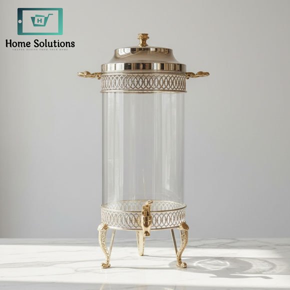 Crafted with a durable stainless steel base and a crystal-clear glass container, it ensures hygiene, stability, and a stunning visual display. The smooth-flow tap provides effortless dispensing, while the elevated gold-finished stand enhances the aesthetics of any event. Whether it’s for home gatherings, wedding buffets, hotels, cafés, or catering setups, this dispenser adds a touch of sophistication to every serving moment.