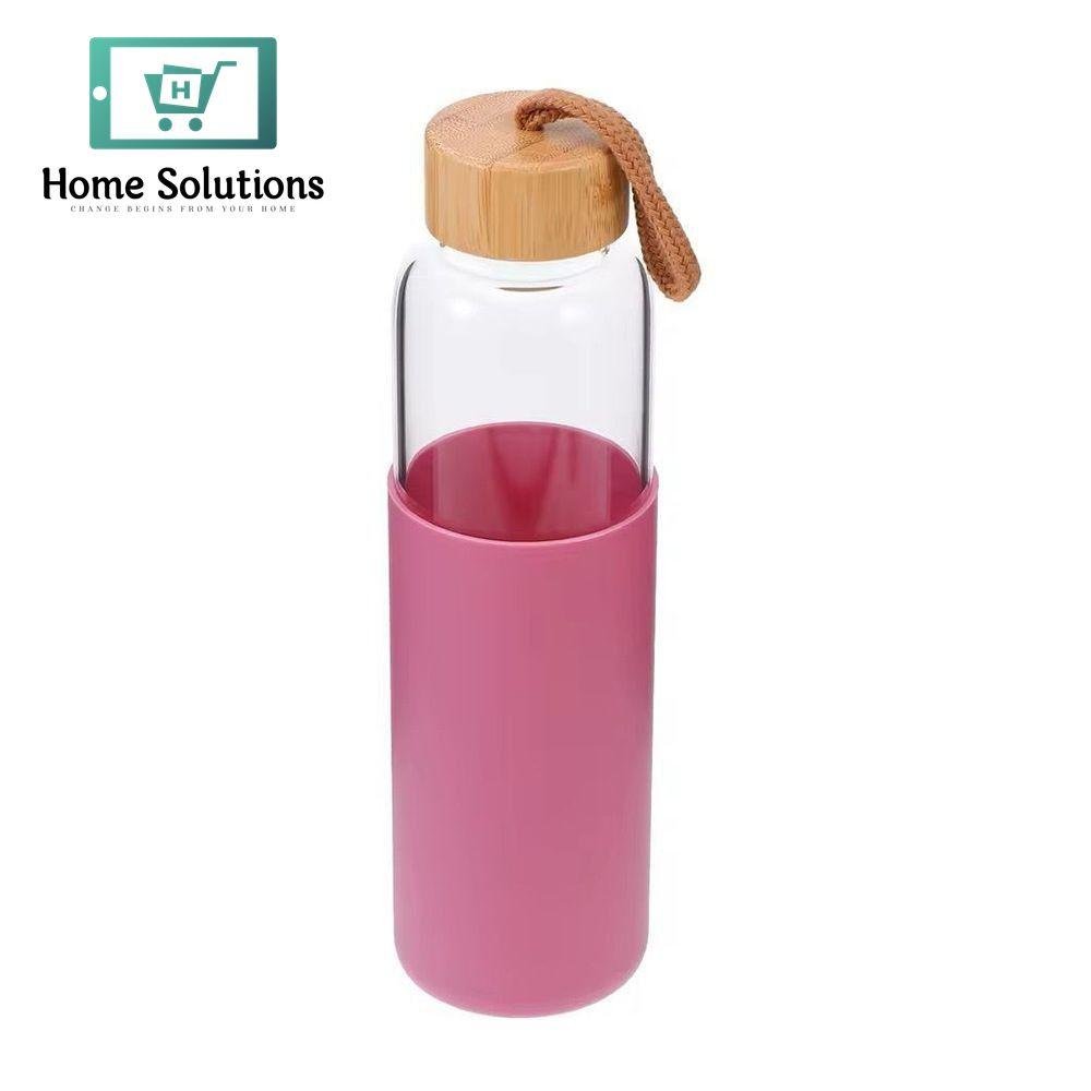 Glass Water Bottle With Wooden Cap & Silicone Cover