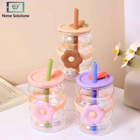 Glassium Flower design Sipper Cup with Straw