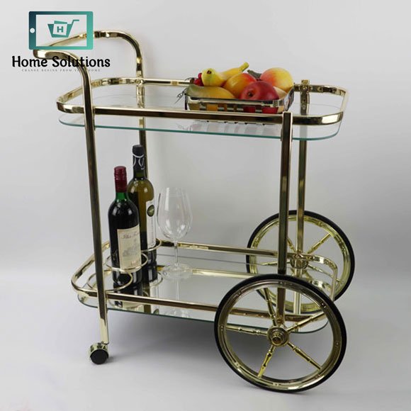 Crafted from high-quality brass and glass, it offers durability while maintaining a luxurious look. Ideal for serving drinks, displaying décor items, or hosting parties, this versatile trolley enhances your living space. Perfect for modern Pakistani homes or as a premium gift for weddings, housewarmings, and special occasions.