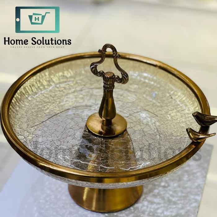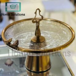 Present your culinary delights with unparalleled elegance on this handmade Turkish serving platter. Featuring a beautifully textured glass tray with a delicate cracked effect, framed by a lustrous brass rim, and supported by a sturdy solid brass base. This exquisite piece, a true reflection of Turkish artistry, is perfect for serving appetizers, desserts, or small bites, making every occasion feel special. It also doubles as a stunning decorative accent for your table or counter.