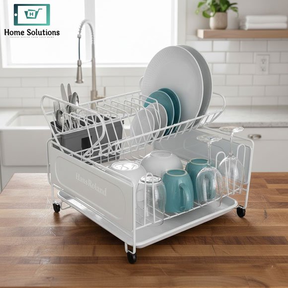 Upgrade your kitchen organization with the HausRoland 2 Layer Dish Rack – Grey, designed to give you a sleek, modern solution for drying and storing dishes, plates, bowls, cups, and utensils.