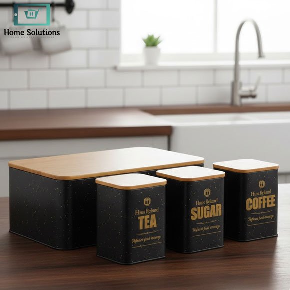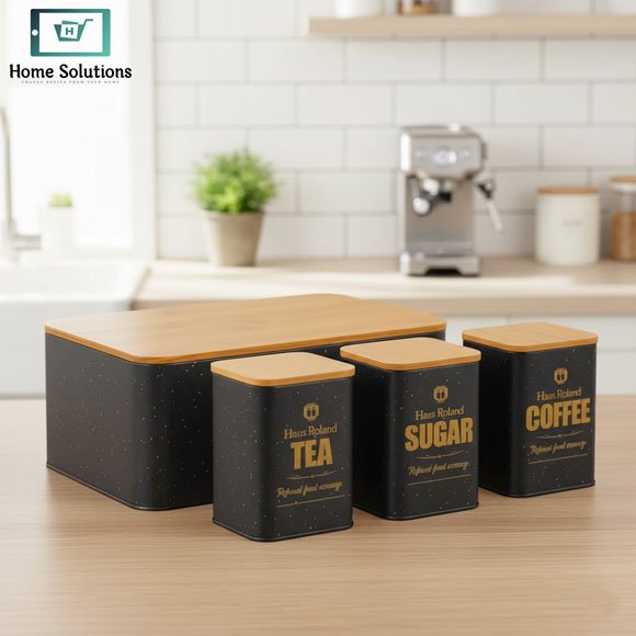 Organize your kitchen in style with the HausRoland Deluxe Bread Bin & Canister Combo Set – Black, a perfect blend of modern design, durability, and functionality. Featuring a sleek black finish with elegant bamboo accents, this premium set adds a refined look to contemporary Pakistani kitchens.