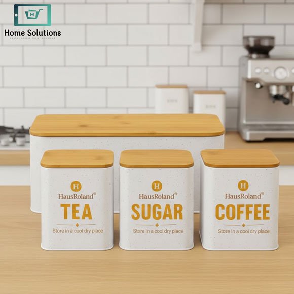 Organize your kitchen in style with the HausRoland Deluxe Bread Bin & Canister Combo Set – White , a perfect blend of modern design, durability, and functionality. Featuring a sleek White finish with elegant bamboo accents, this premium set adds a refined look to contemporary Pakistani kitchens.