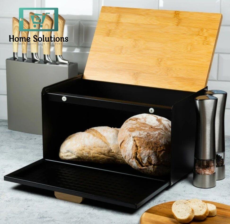 Vintage Metal Roll-Top Bread Box – Large Dust-Proof Storage Bin for Kitchen & Countertops (Black)