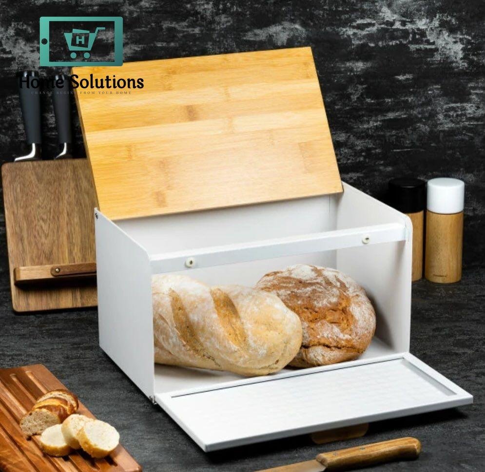 Vintage Metal Roll-Top Bread Box – Large Dust-Proof Storage Bin for Kitchen & Countertops (White)