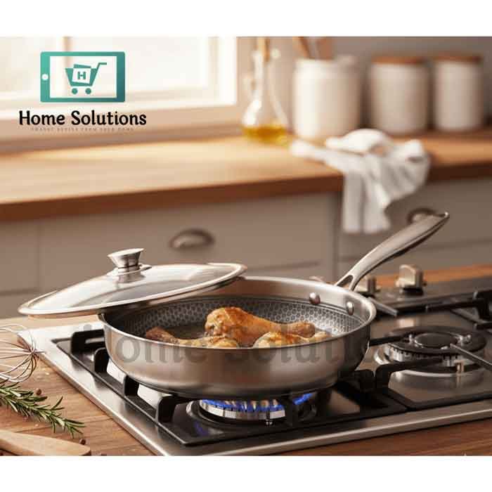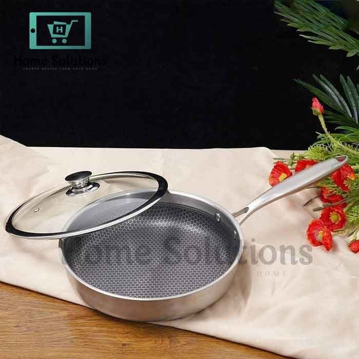 Elevate your cooking with our premium 28cm Honeycomb Deep Fry Pan with Lid, available in Pakistan. Crafted for superior non-stick performance and exceptional durability, this pan is perfect for deep frying, sautéing, and more. The innovative honeycomb pattern ensures even heat distribution, while the sturdy construction guarantees long-lasting use. Comes with a clear glass lid for convenient cooking. A must-have for every Pakistani kitchen!