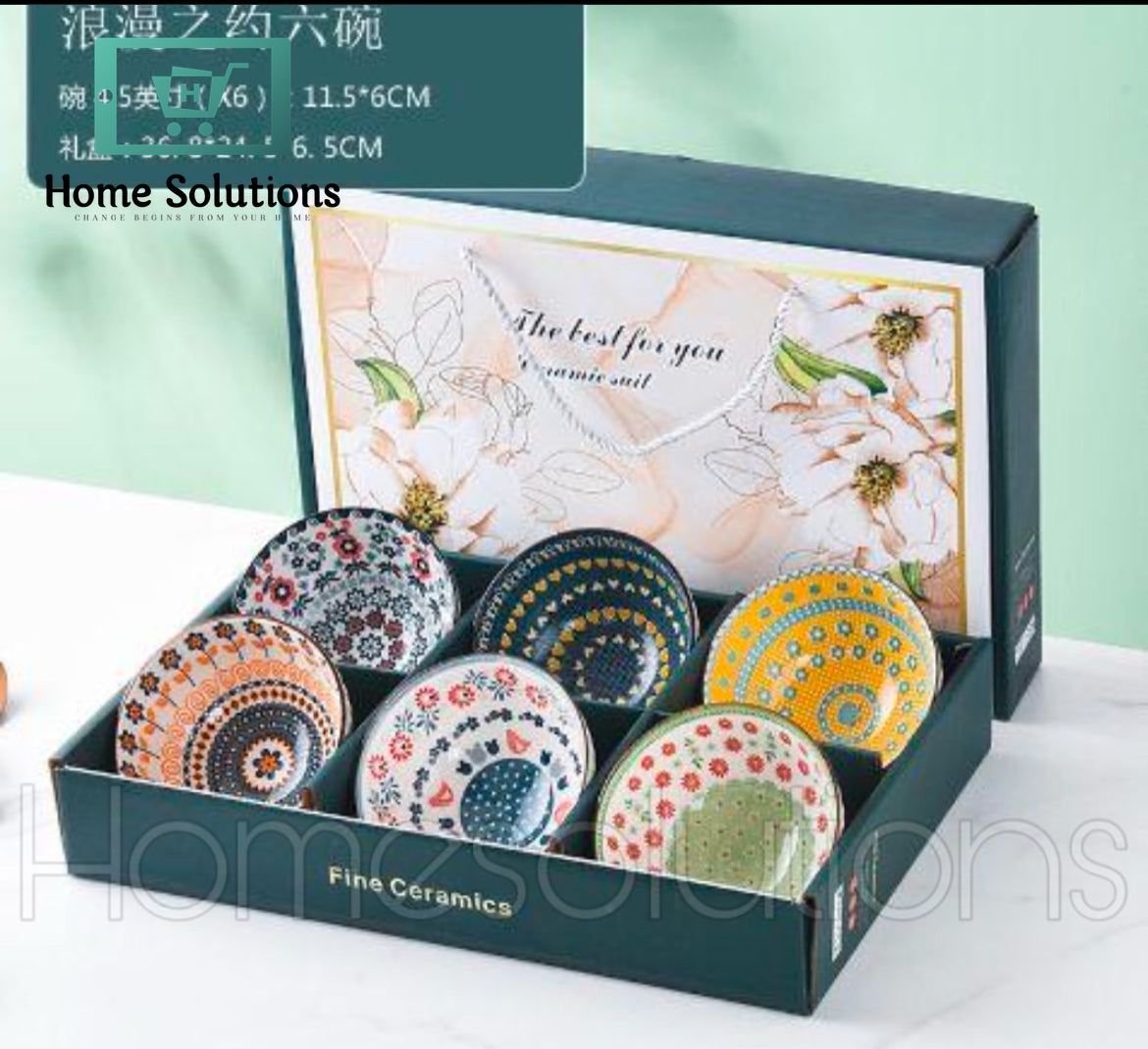 Japanese Abstract Style Soup/Sweet Bowl Set of 6 with Gift Box Packing