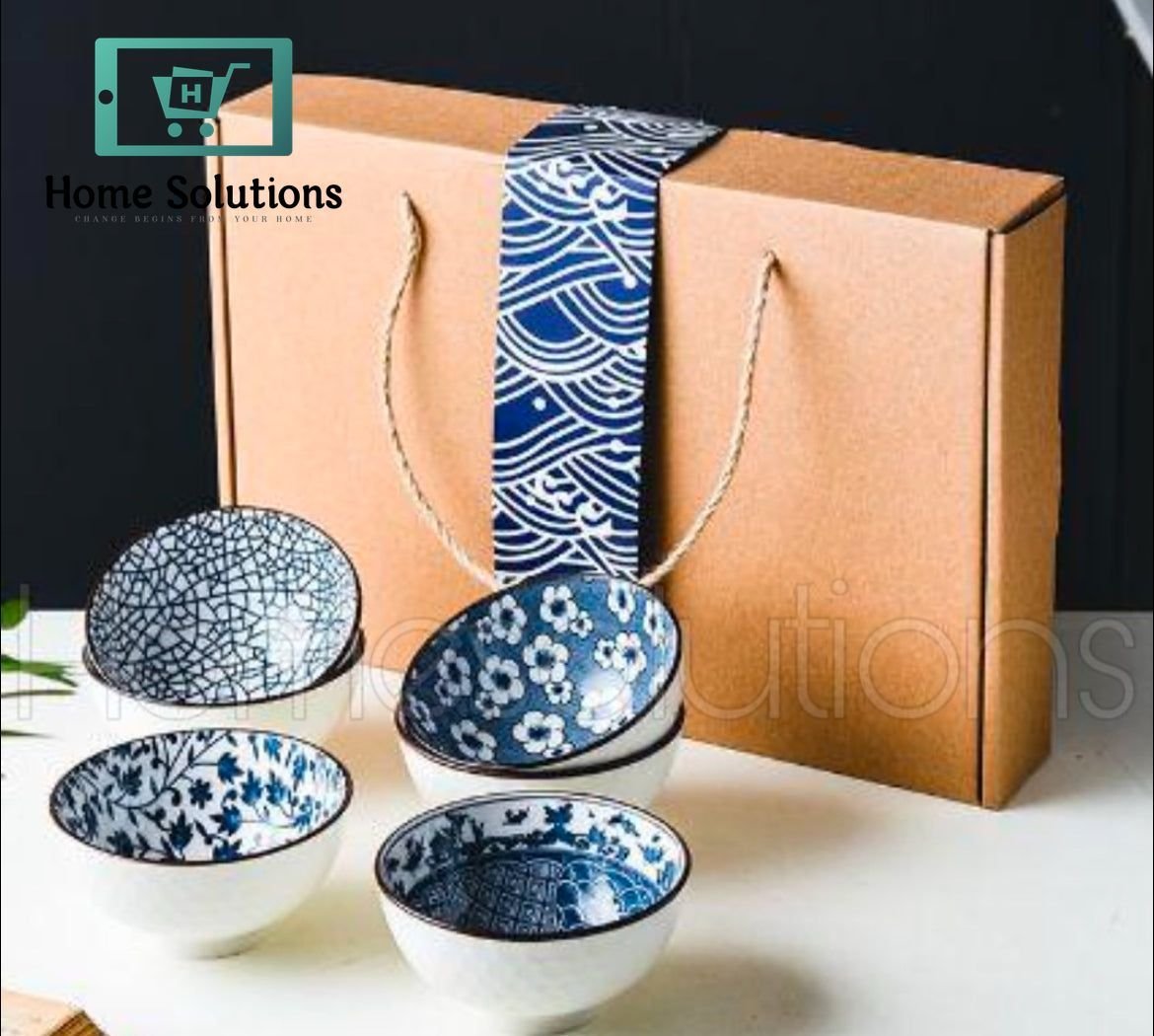 Japanese Style Blue Soup/Sweet Bowl Set of 6 with Gift Box Packing