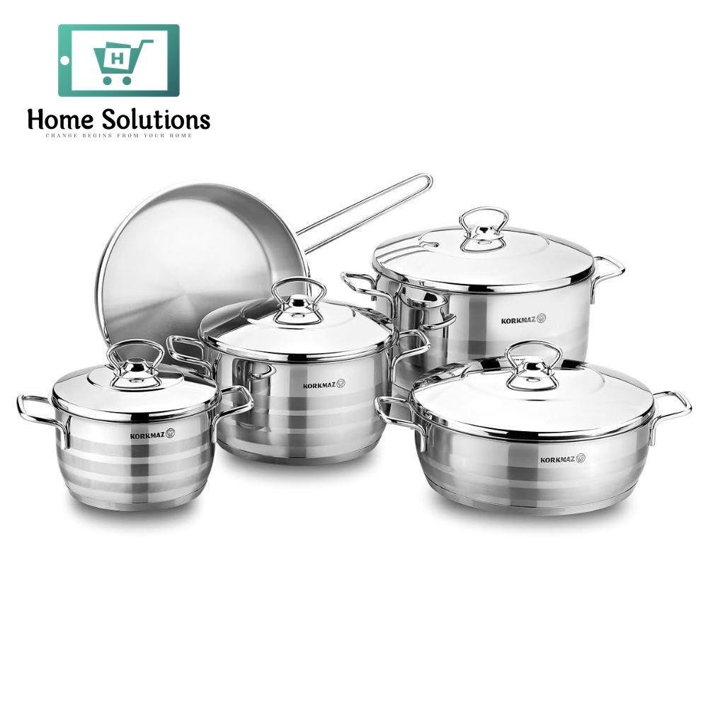 Designed for gourmets and professionals, this cookware set enhances the taste of your meals while adding a distinguished, modern look to your kitchen. Its polished stainless steel finish and thoughtfully crafted design reflect a perfect blend of tradition and contemporary style. The Korkmaz Astra 9-Piece Set is the ultimate choice for anyone seeking efficiency, elegance, and professional-quality cooking at home.