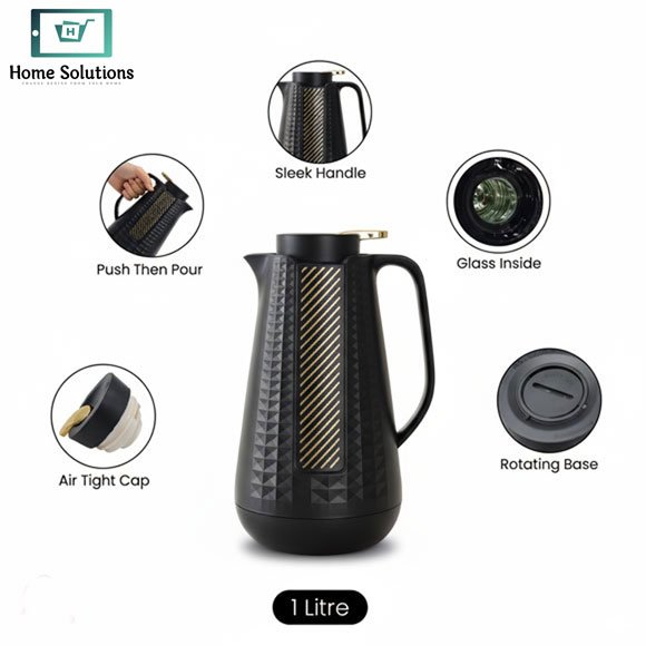 Serve your guests in style with this Luxury 1-Litre Geometric Glass Lined Vacuum Flask, designed for Pakistani homes that love elegance with performance. Whether it’s hot chai, kehwa, coffee or chilled water, this premium thermos keeps beverages hot or cold for hours without affecting taste or freshness.