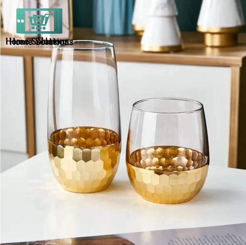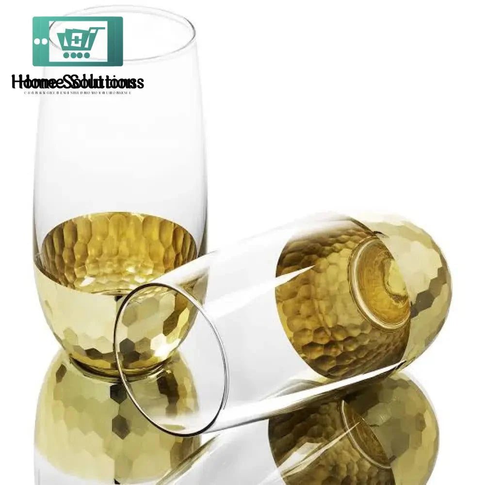 Luxury Handmade Gold Hammered Base Long Glasses Made Of Crystal – Set of 6