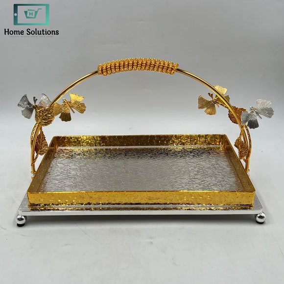 Luxury Golden Silver Serving Platter with Butterfly Handle