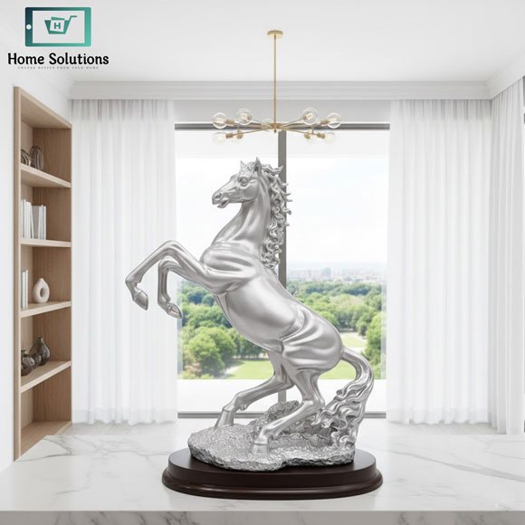 Add a symbol of power, success, and elegance to your space with this Luxury Silver Rearing Horse Sculpture with Wooden Base. Expertly crafted with fine detailing, this sculpture captures the horse in a dynamic rearing pose, reflecting strength, confidence, and timeless artistry.