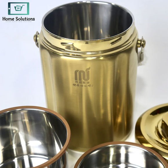 Crafted from high-quality stainless steel, it features a unique diamond-texture finish that enhances durability while giving it a sophisticated luxury look. Its multi-layer design ensures excellent heat retention, making it ideal for carrying rice, curry, rotis, pasta, salads, and even kids’ meals.