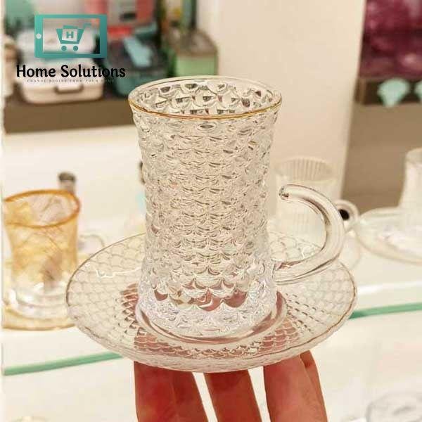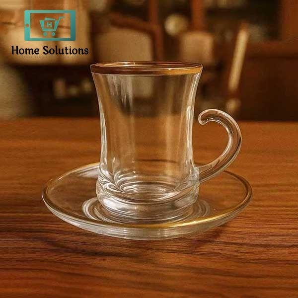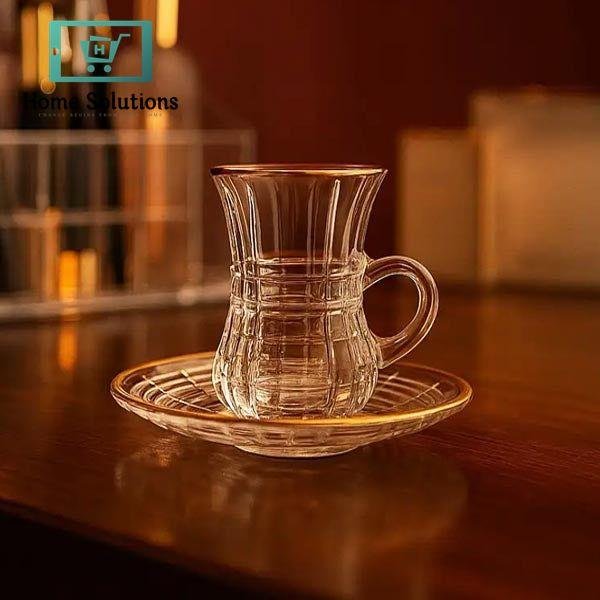 Luxury Turkish Tea Glass Set with Saucers – 6 Pcs 110ml Gold Rim Design