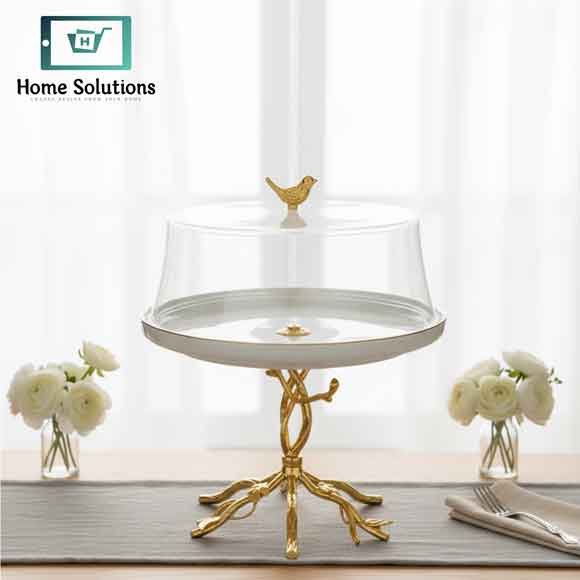 Luxury White & Gold Bird Cake Stand with Dome Cover