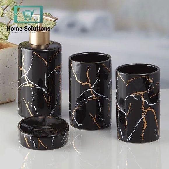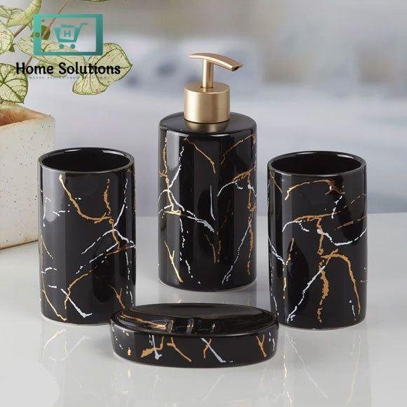 Bring elegance and function to your bathroom with this 4-piece ceramic accessory set. Designed with a modern marble pattern, it includes a soap dispenser, toothbrush holder, tumbler, and soap dish. Durable and stylish, this set keeps your bathroom organized while adding a touch of luxury to your daily routine.