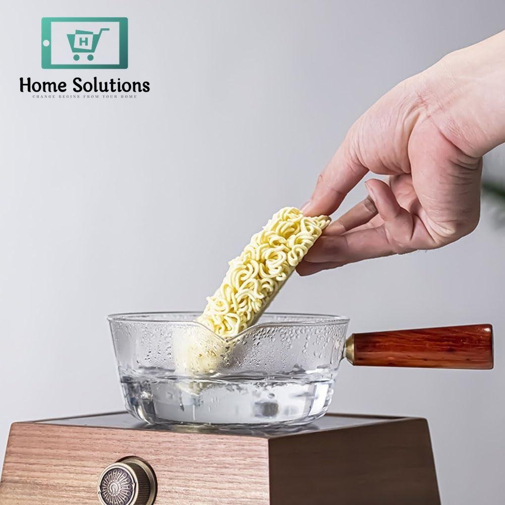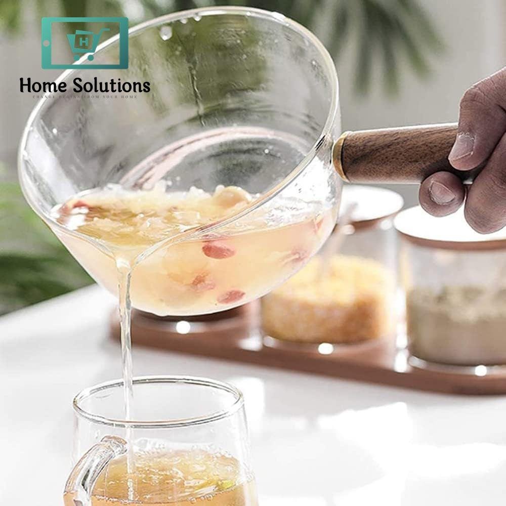 V SHAPED SPOUT: A glass milk pot with a V shaped spout for easy pouring and no dripping, suitable for hot milk, salads, noodles, etc.