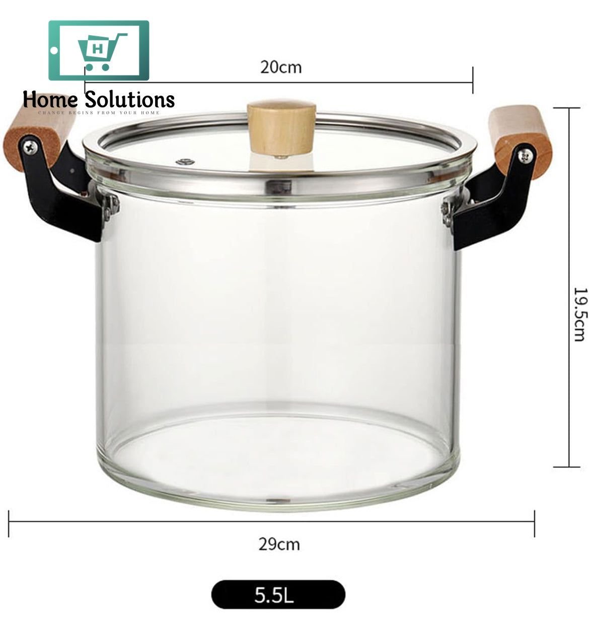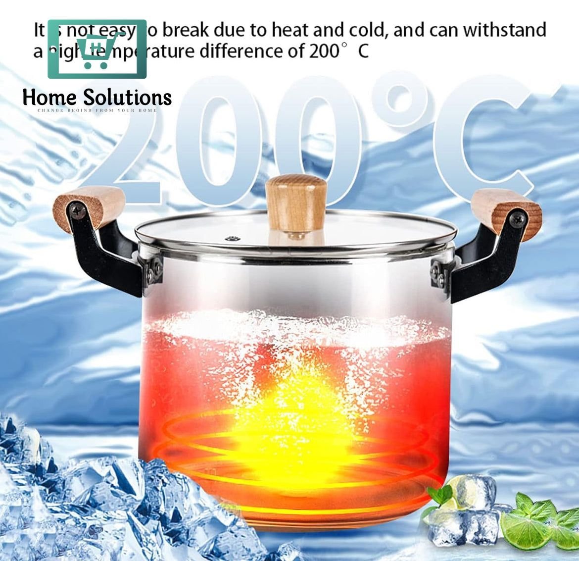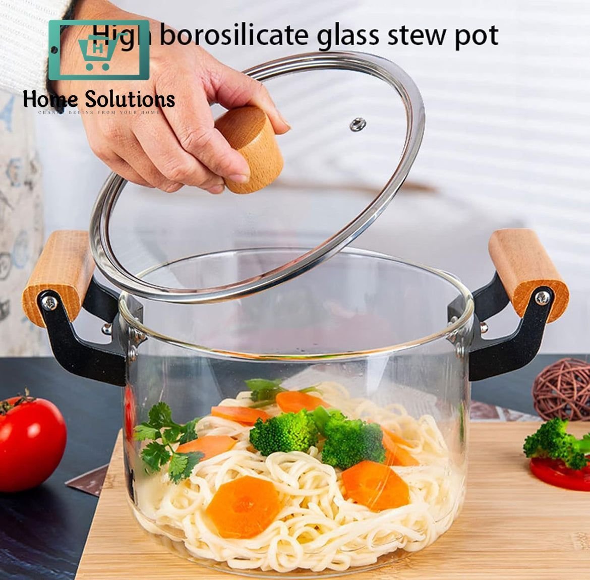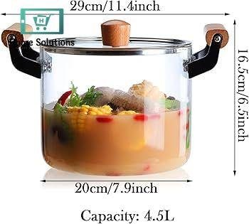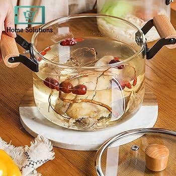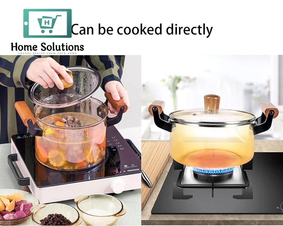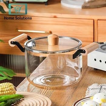 OLLA Borosilicate Glass Cooking Pot With Heavy Wooden Handles Perfect For All Kind Of Cooking