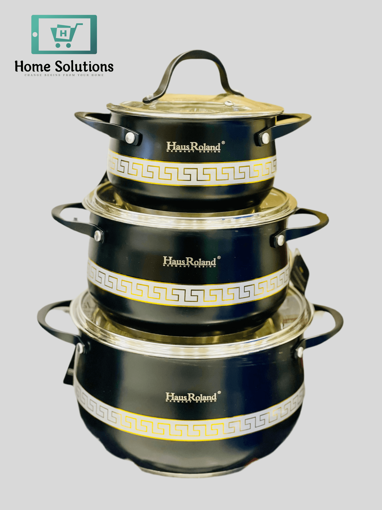 HausRoaland stainless steel premium quality 3pcs cookware set with heavy induction support bottom.