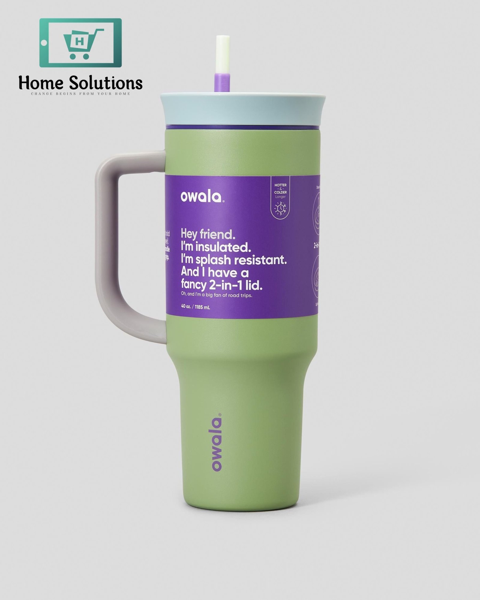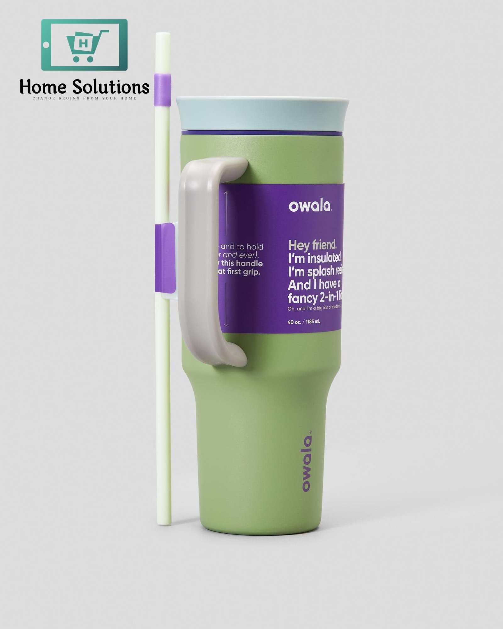 Owala FreeSip 40 oz Tumbler | High-Quality Branded Water Bottle | Grey/Green