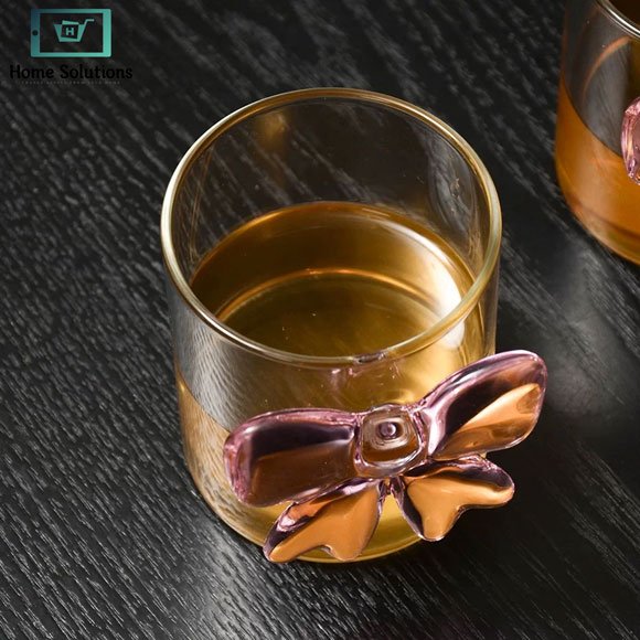 Elegant 300ML pink bow glass made from clear thick glass. Perfect for tea, coffee, juice & stylish serving.