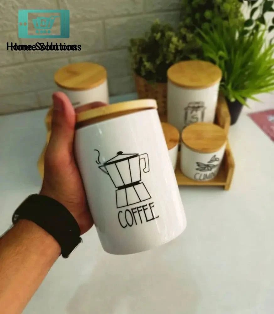 3pcs Metalic Tea Coffe And Sugar Airtight Jars With Elegant Wooden Lid