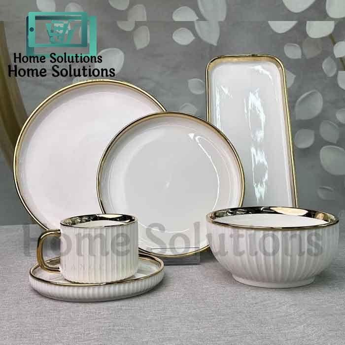 Porcelain Cream Shine Lining Dinner Set – 32 Pieces