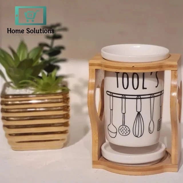 This spoon holder is designed to catch drips and spills, keeping your countertops clean and tidy. Its stylish appearance makes it an ideal gift for cooking enthusiasts or a lovely addition to your own kitchenware collection. Whether you’re stirring, serving, or cooking, this ceramic spoon holder with a bamboo stand is both a practical and attractive accessory to have on hand.