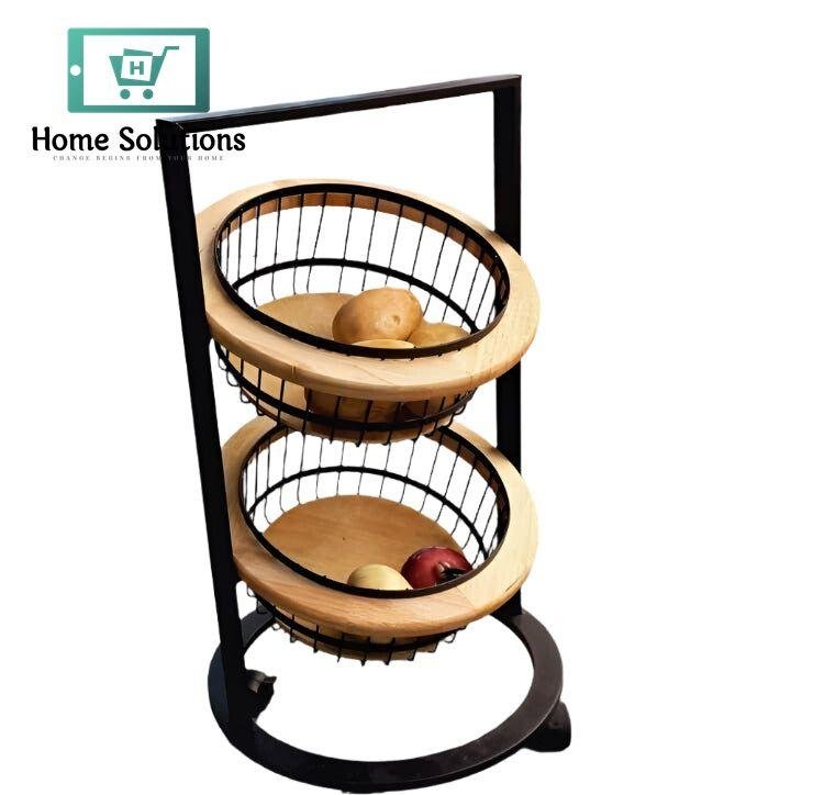 Organize your kitchen in style with this Portable 2-Tier Luxury Onion Basket. Crafted with a sturdy metal frame and finished with a premium wooden top, this storage basket adds both elegance and practicality to your space.