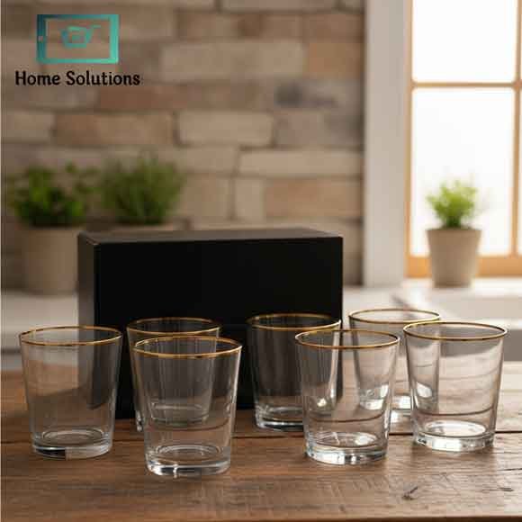Add elegance to every sip with our Premium 6-Piece Glass Set, designed with a sleek gold rim for a touch of luxury.