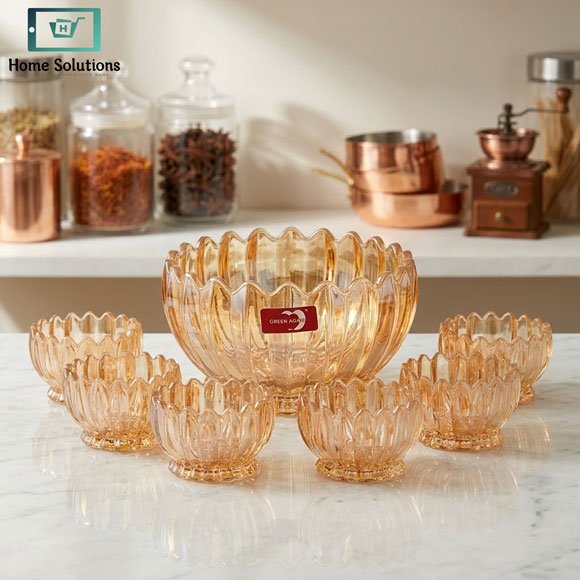 Ideal for home kitchens, dining tables, restaurants, and special events, the Premium Crystal Glass Bowl Set 7 Pcs adds sophistication and practicality to your tableware collection.
