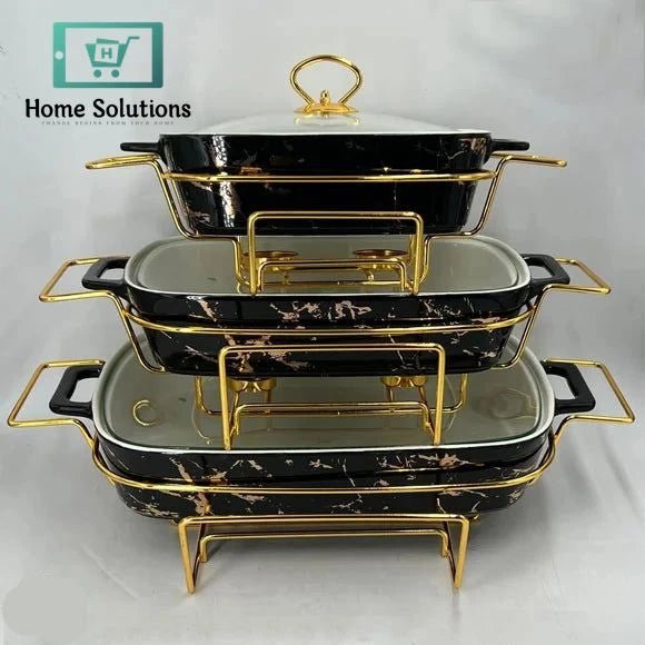 Rectangular Ceramic Chafing Dish Buffet Set – Marble Finish Food Warmer