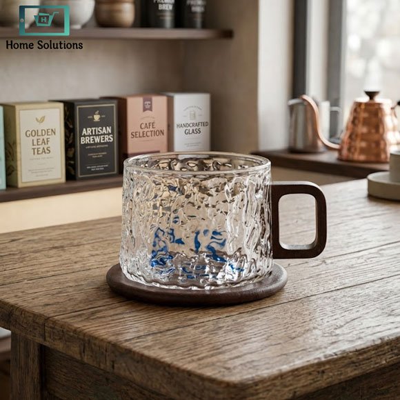 Enhance your serving style with this premium Ripple Glass Cup with Wooden Saucer Set (6pcs), perfect for modern homes and elegant gatherings. Designed with a unique ripple texture, these glass cups add a sophisticated touch to your coffee and tea experience.