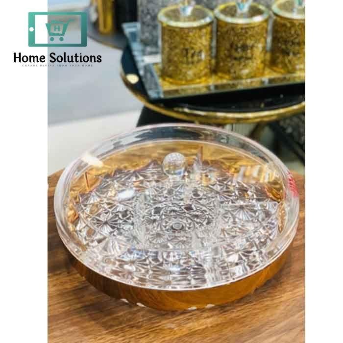 Round Acrylic Dry Fruit & Snack Tray with Lid – Transparent Multi-Section Server