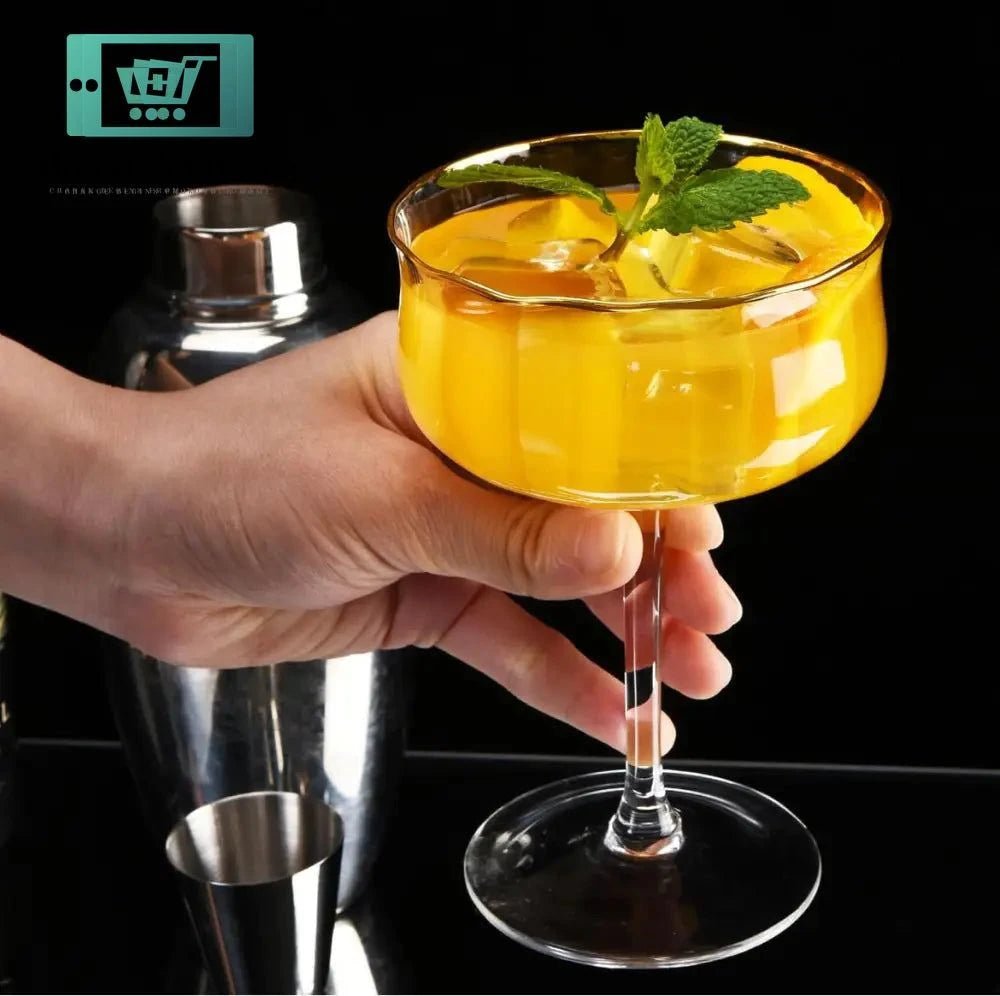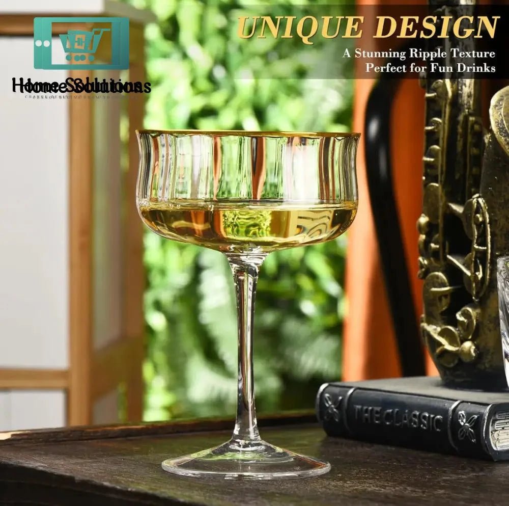 ROXBURGH Real Crystal Martini Glass with Gold Rim & Long Stem - 10oz - Set of 6 TABLEWARE