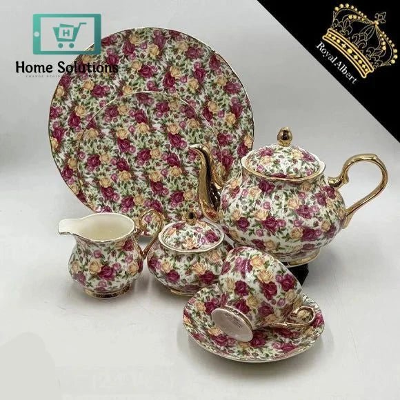 Serve tea in timeless elegance with this 24-piece Royal Albert tea set, exquisitely crafted from fine bone china. Designed to serve up to 6 guests, this set features delicate floral motifs, soft gold accents, and the signature Royal Albert charm — perfect for afternoon tea, special occasions, or luxury gifting.