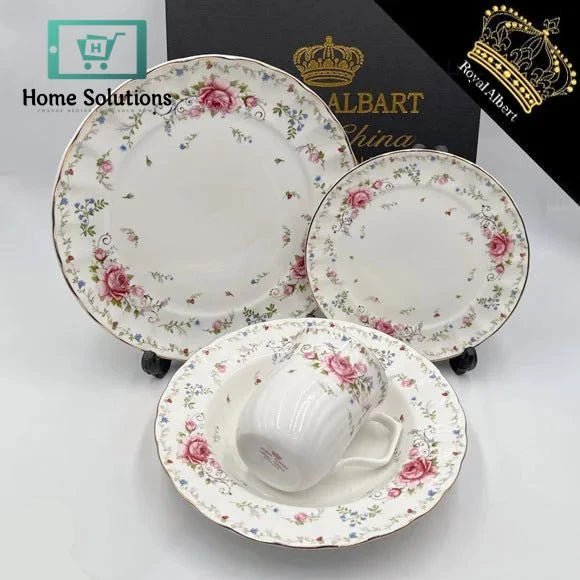 Start your mornings in style with this Royal Albert 24-piece breakfast set, crafted from premium fine china and designed to serve 4 people. Featuring signature floral artwork and soft gold accents, this set adds a classic English charm to your breakfast table.