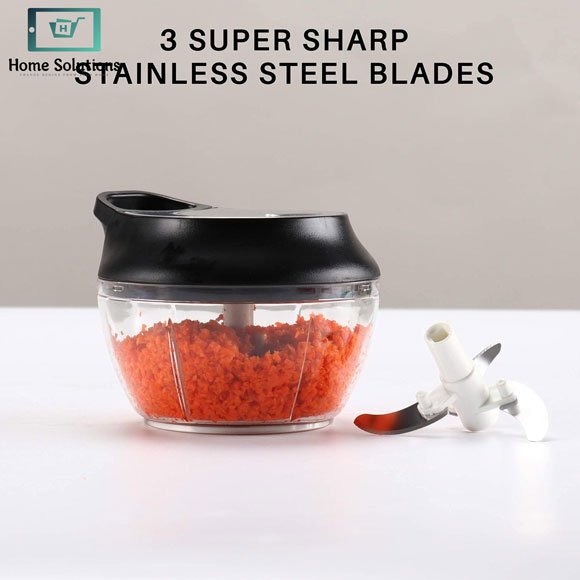 Equipped with sharp stainless steel blades, the chopper delivers smooth and even results in seconds. Simply place ingredients inside, close the lid, and pull the cord — the more you pull, the finer the chop. This manual mechanism makes it ideal for homes facing load-shedding or anyone looking for a simple, energy-saving kitchen solution.