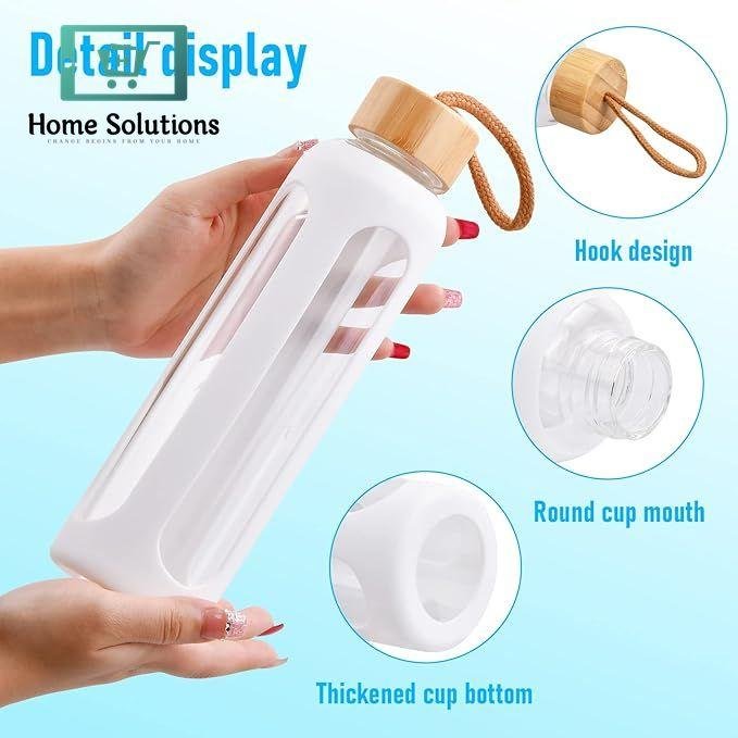 - 【Water Bottle Size】One glass bottle with silicone sleeve and bamboo lid, dimensions: 24 x diameter 5 cm, capacity: 550 ml, weight: 370 g. The glass bottle can be easily cleaned in the dishwasher.