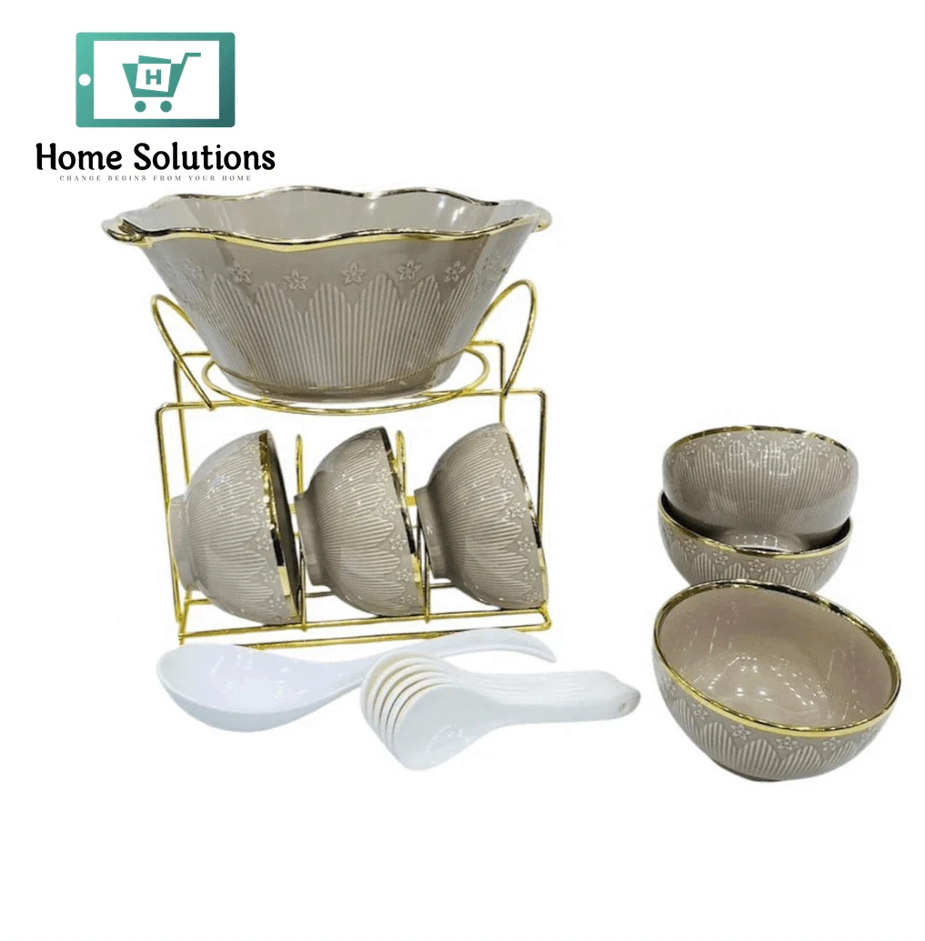 Fancy Soup Set 16 Pcs with Golden Stand – Black & Gold Finish