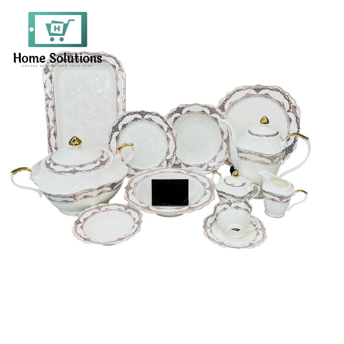 Bring a contemporary touch to your dining table with this 61-piece square dinner set, designed to serve 8 persons in style. Featuring a sleek square shape, each piece combines modern aesthetics with everyday functionality. Crafted from high-quality material for durability and a refined finish, this set includes dinner plates, side plates, bowls, and essential serving pieces. Perfect for family meals, festive occasions, or special gatherings, it adds both elegance and practicality to your dining experience.