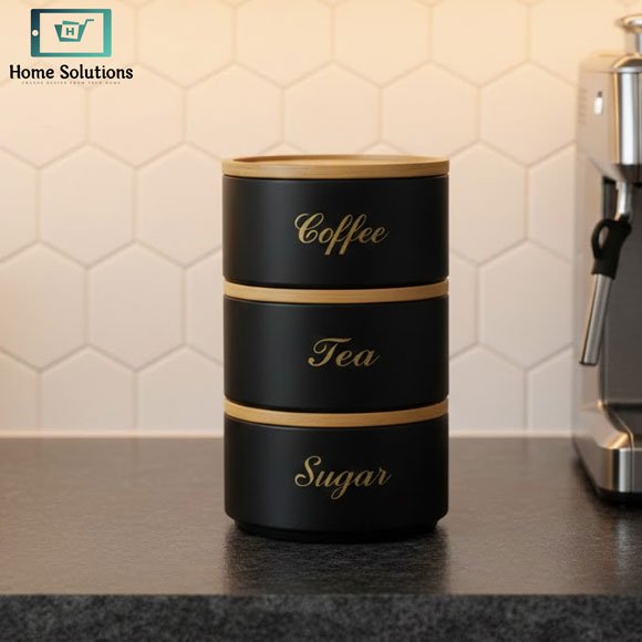 Elevate your kitchen décor with this Stacking Metal Canister Set – Black, designed to combine modern elegance with everyday functionality. Crafted from premium-quality metal and finished in a sleek matte black coating, this set adds a refined, minimalist look to any kitchen space.